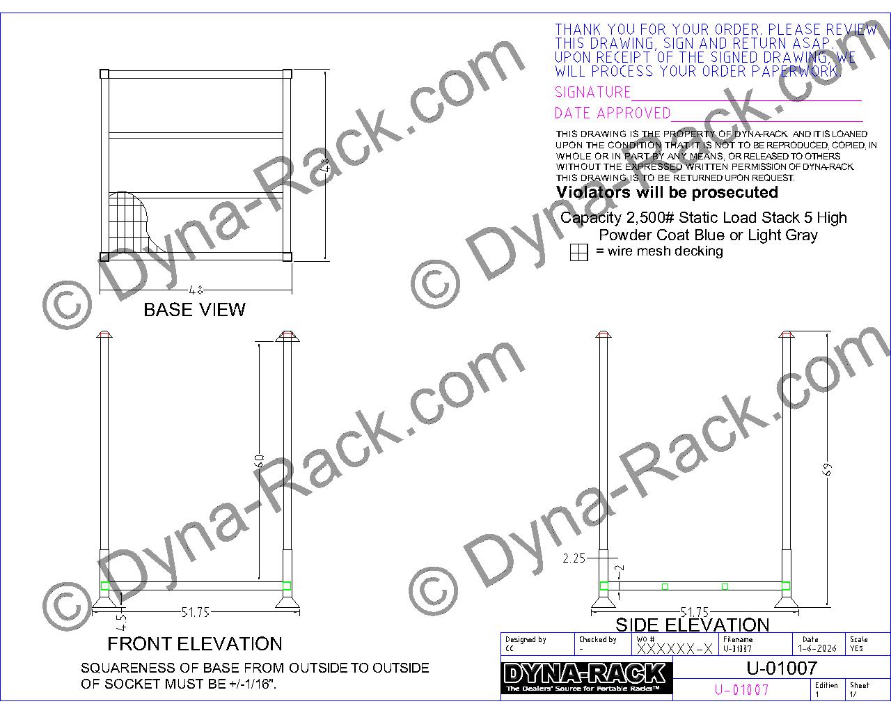 Type of Rack: LN-3, All steel stack rack